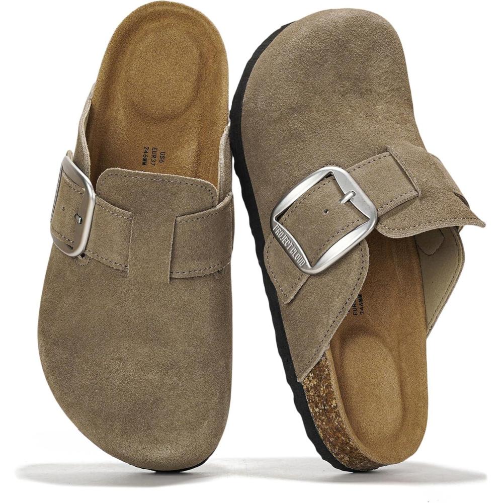 imageProject Cloud 100 Genuine Leather Clogs for Women Shoes  Memory Foam Insole NonSlip ampamp Natural Cork Footbed Arch Support Big Buckle Womens Clogs and Mules Footwear ManchesterMushroom Suede