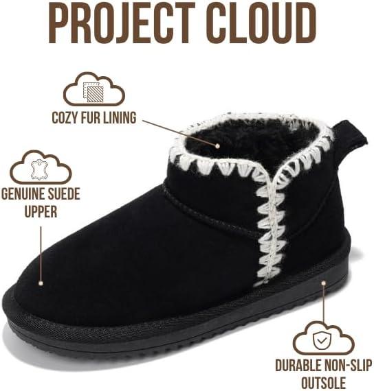 Project Cloud 100% Genuine Leather Kids Boots – Lightweight Fur-Lined Ankle Boots for Girls & Boys with Memory Foam Insole – Non-Slip Winter Kids Shoes (Nevada)(Black Suede)