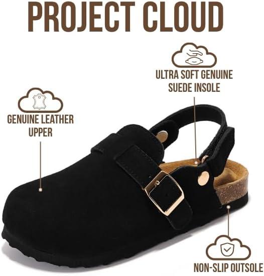 imageProject Cloud 100 Genuine Leather Kids Clogs with Cork Footbed Arch Support  NonSlip Slippers ampamp Sandals for Boys ampamp Girls FootwearBlack Suede
