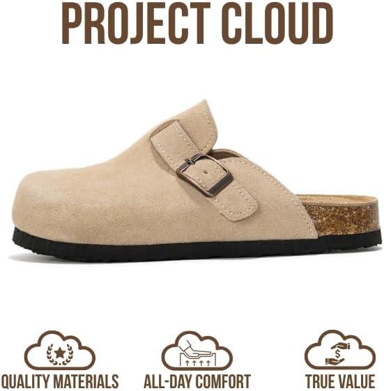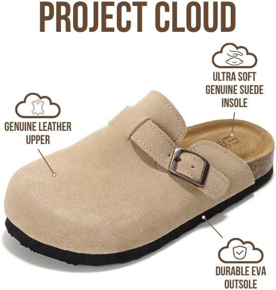 Project Cloud 100% Genuine Leather Kids Clogs with Cork Footbed Arch Support – Non-Slip Slippers & Sandals for Boys & Girls Footwear(Stone Suede)