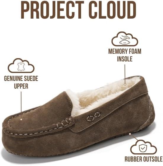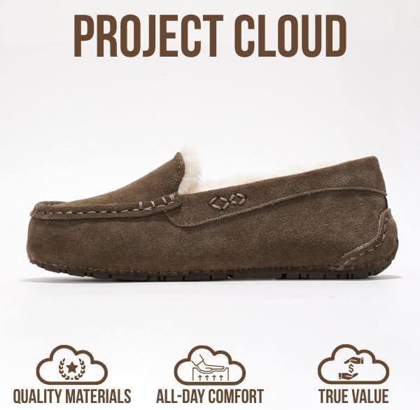 Project Cloud 100% Genuine Leather Slippers for Women – Fur Lined Outdoor Slippers for Women Footwear with Memory Foam – Stylish Womens Moccasin (Cathi)(Chocolate)