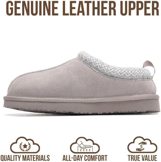 Project Cloud 100% Genuine Leather Womens Slippers with Genuine Australian Shearling Fur Lining Slippers for Women – Non-Slip EVA with Memory Foam Fuzzy Slippers Women Footwear (Nerita)(Grey Mono Suede)