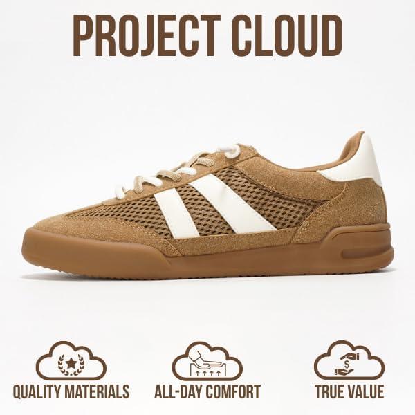 Project Cloud Casual Sneakers for Women – Memory Foam Insoles Lace-Up Womens Shoes and Lightweight Women’s Fashion Sneakers – Water Resistant and Non-Slip Shoes for Women Footwear (Verdict)(Tan)