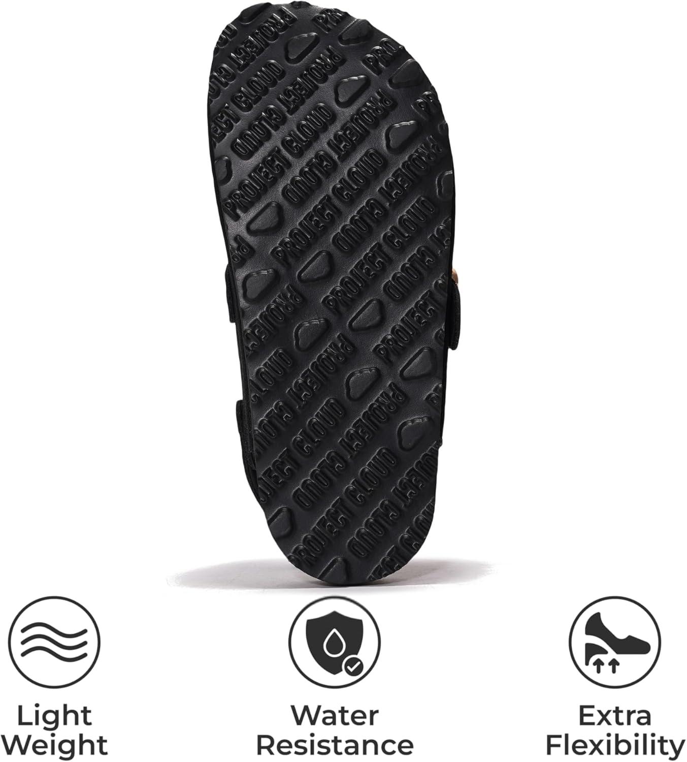 Project Cloud Clogs for Kids – Genuine Leather Kids Clogs with Cork Footbed Arch Support – Non-Slip Slippers & Sandals for Boys & Girls Footwear(Black Suede With Back Strap)