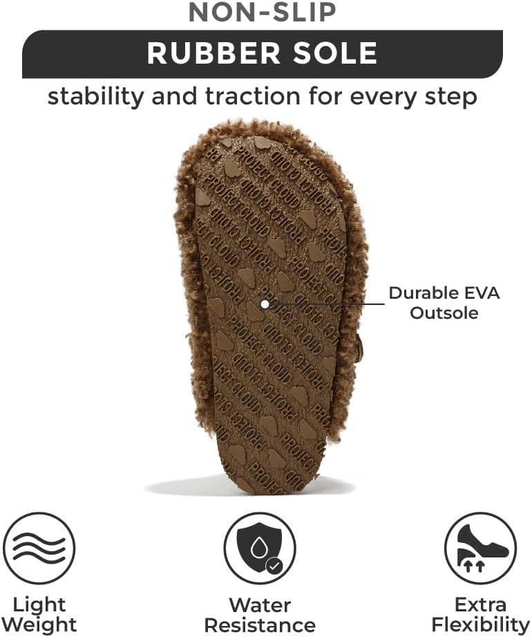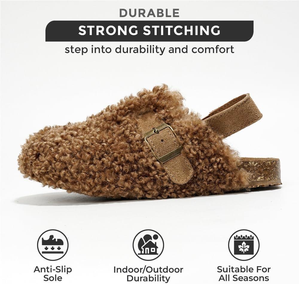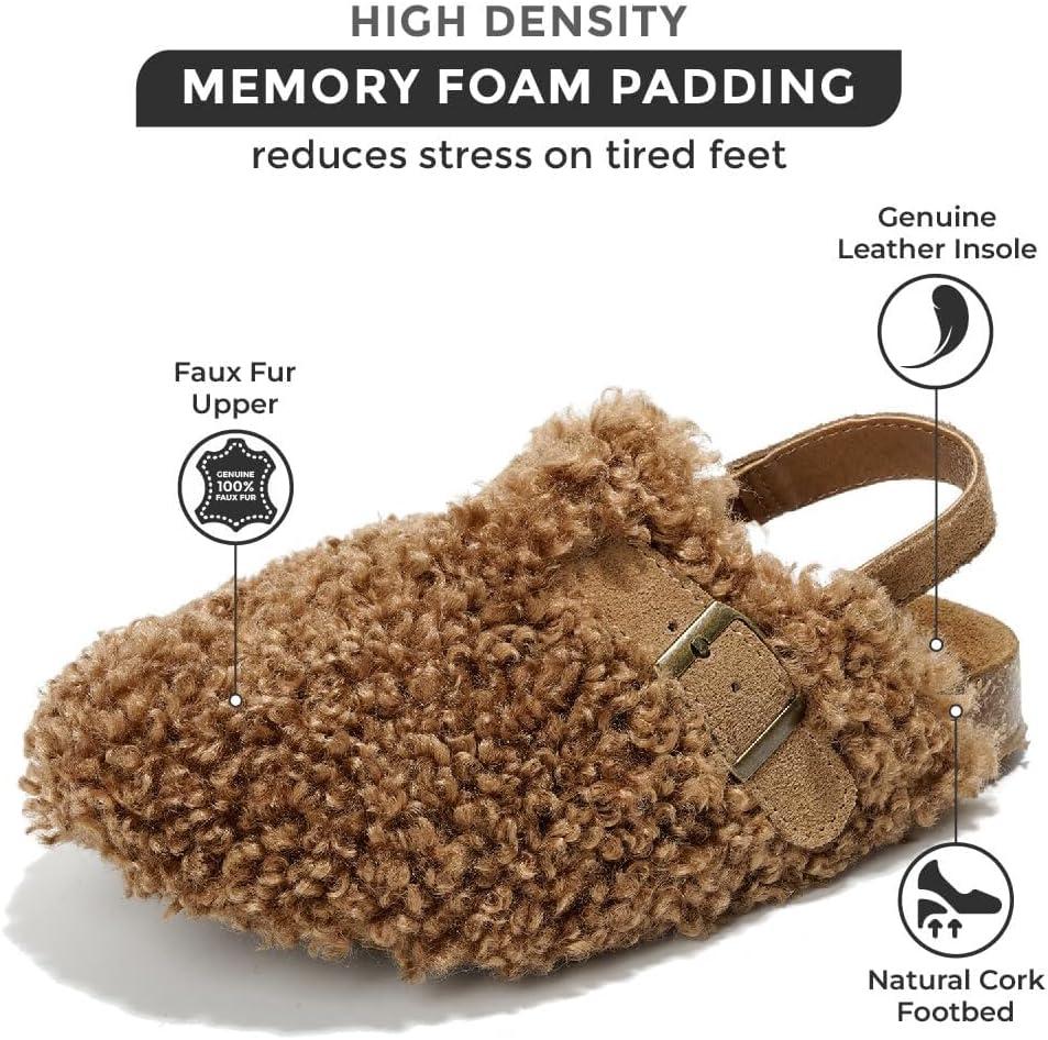Project Cloud Clogs for Kids – Genuine Leather Kids Clogs with Cork Footbed Arch Support – Non-Slip Slippers & Sandals for Boys & Girls Footwear(Chestnut Fur Lined)