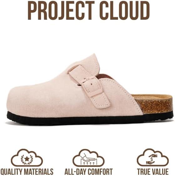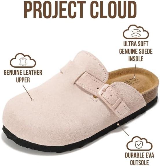 Project Cloud Clogs for Kids – Genuine Leather Kids Clogs with Cork Footbed Arch Support – Non-Slip Slippers & Sandals for Boys & Girls Footwear(Light Pink Suede)