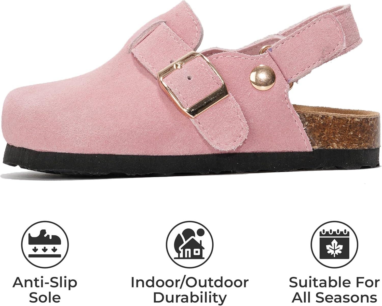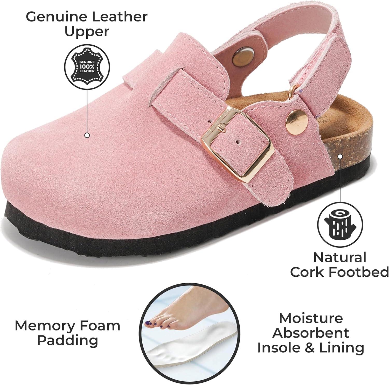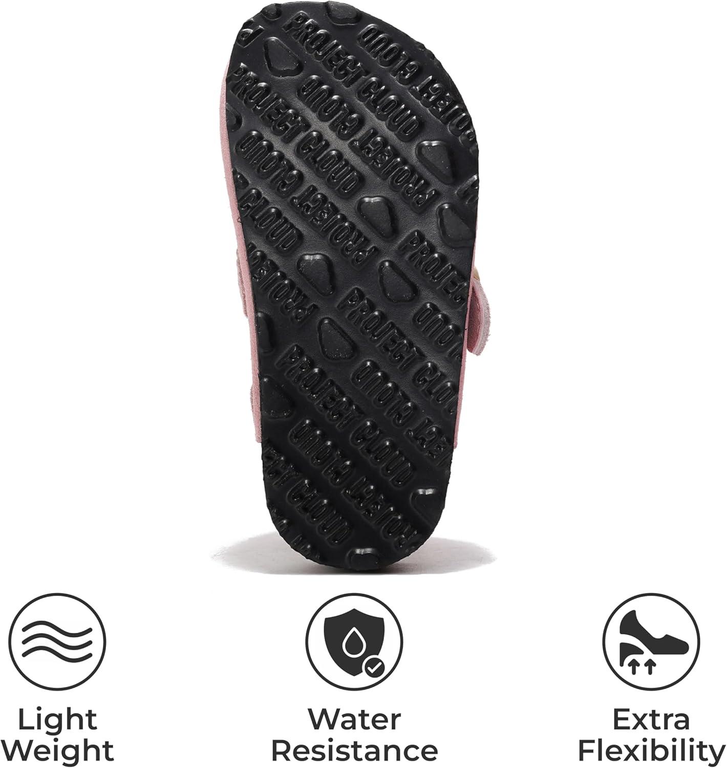 Project Cloud Clogs for Kids – Genuine Leather Kids Clogs with Cork Footbed Arch Support – Non-Slip Slippers & Sandals for Boys & Girls Footwear(Pink With Back Strap)