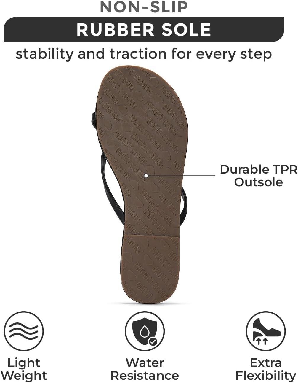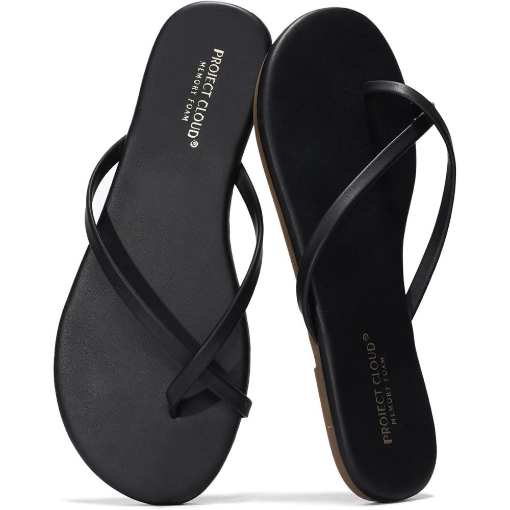 Project Cloud Flip Flops for Women – Memory Foam Flats Summer Sandals for Women 2025 – Vegan Leather Lightweight Womens Sandals Summer Beach Essentials Slides(Black: Cross-strap)