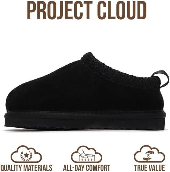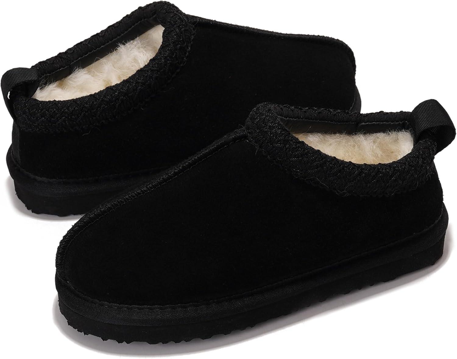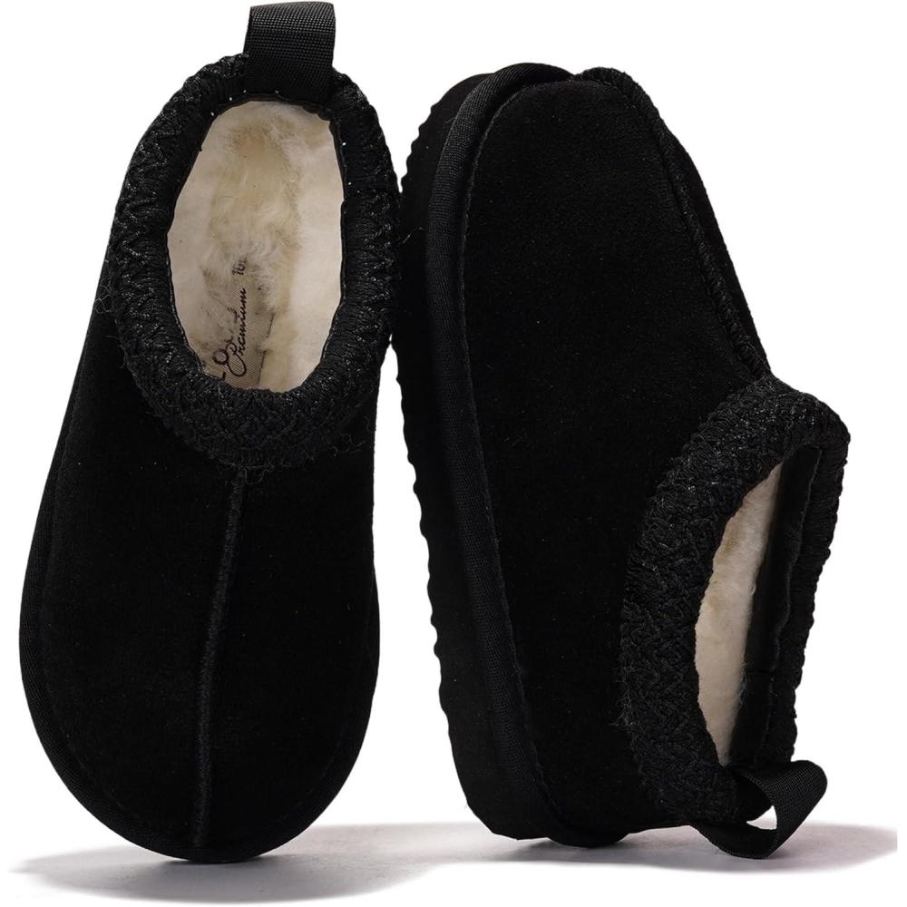 Project Cloud Genuine Leather & Australian Shearling Slippers for Kids – Memory Foam Fuzzy & Non-Slip Fluffy Slippers Girls Footwear & Boys Footwear, Kids Unisex Shoe (Dream Warm)(Black)