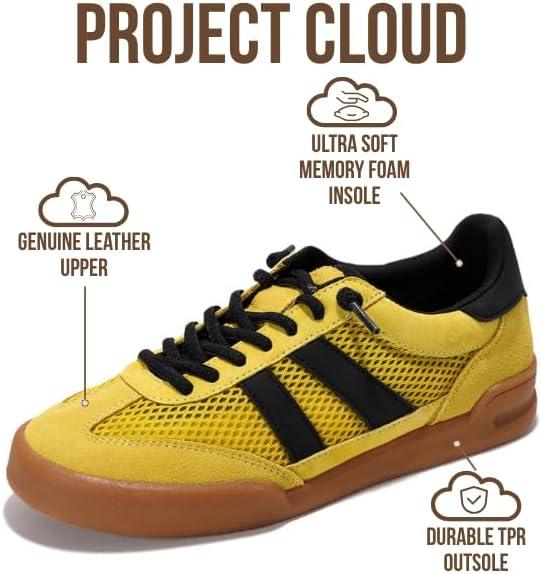 Project Cloud Genuine Leather Casual Sneakers for Women – Memory Foam Insoles Lace-Up Womens Shoes & Lightweight Women’s Fashion Sneakers – Non-Slip Shoes for Women Footwear (Verdict)(Yellow Suede)