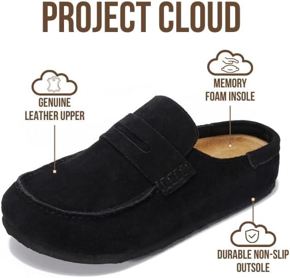 Project Cloud Genuine Leather Clogs for Women – Memory Foam Insole Womens Clogs Non-Slip Outsole Mules for Women Footwear – Women’s Mules & Clogs Fall Shoes (Haven)(Black Suede)