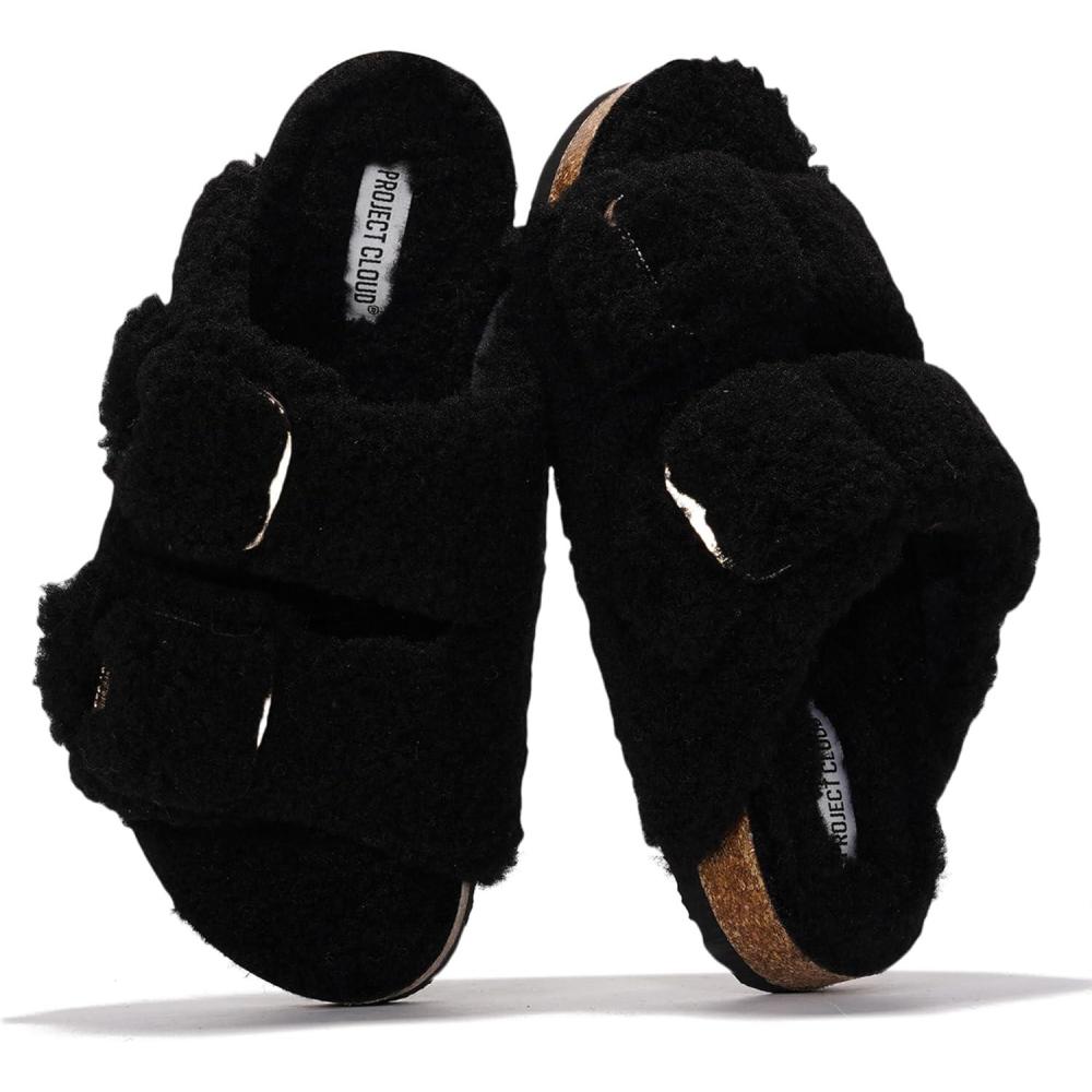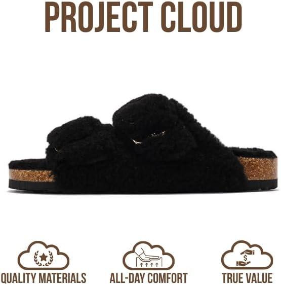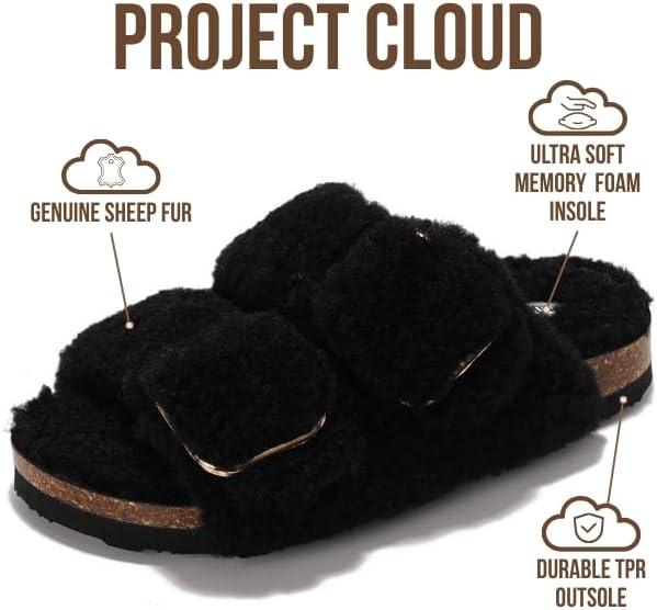 Project Cloud Genuine Leather Flat Sandals for Women 2025 Comfortable Beach Essentials Womens Sandals Memory Foam Vacation Essentials Slides for Women Footwear (Santorini)(Black)