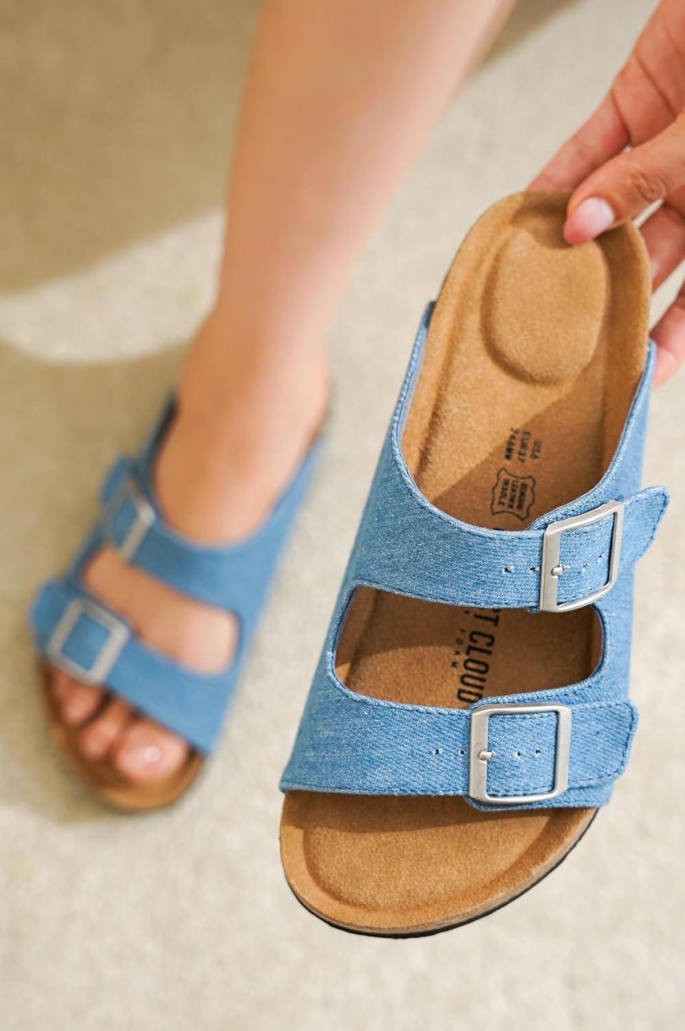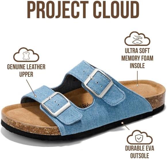 Project Cloud Genuine Leather Flat Sandals Women 2025 Beach Essentials Womens Sandals Memory Foam Vacation Essentials Slides for Women Footwear (Venita)(Denim)
