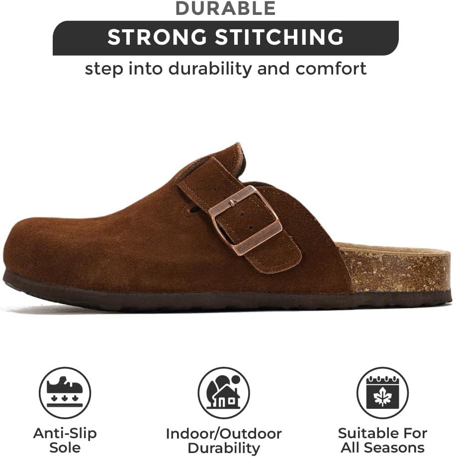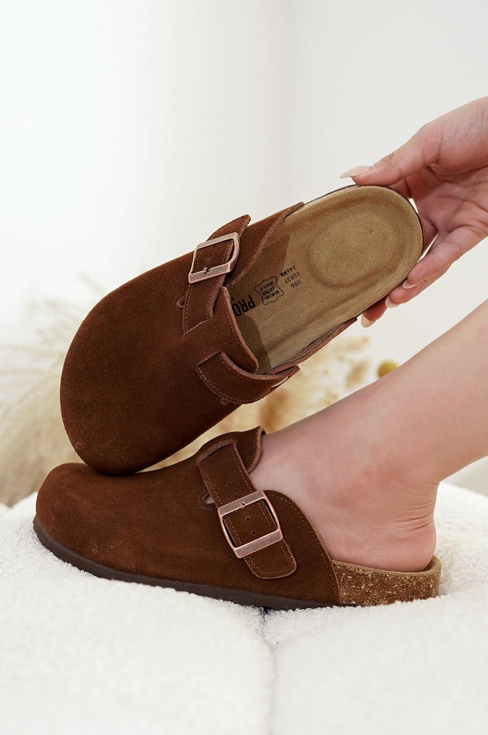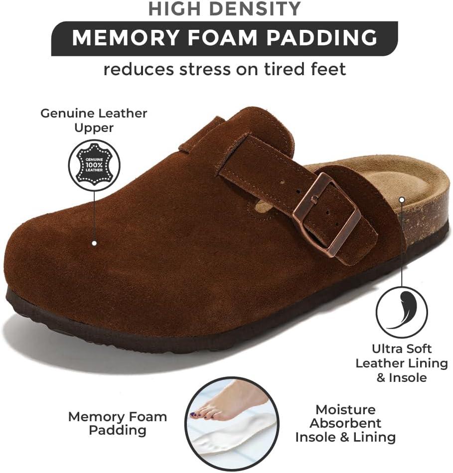 Project Cloud Genuine Leather Footbed Clogs for Women – Memory Foam Arch Support Slippers for Women – Trendy Slip-ons Women’s Mules & Clogs Sandals (Benton)(Cacao Suede)
