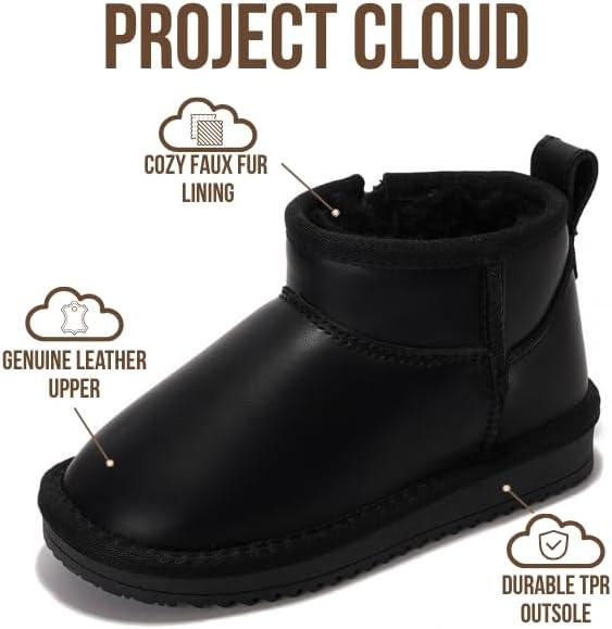 imageProject Cloud Genuine Leather Kids Boots  Lightweight FurLined Ankle Boots for Girls ampamp Boys with Memory Foam Insole  NonSlip Winter Kids Shoes NevadaBlack Suede