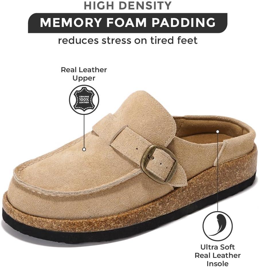 Project Cloud Genuine Leather Moccasin-Style Clogs for Women – Memory Foam and Water Resistant Mules Slip-on – Non-Slip and Durable Clogs Casual Shoes for Women Footwear (Carline)(Sand Suede)