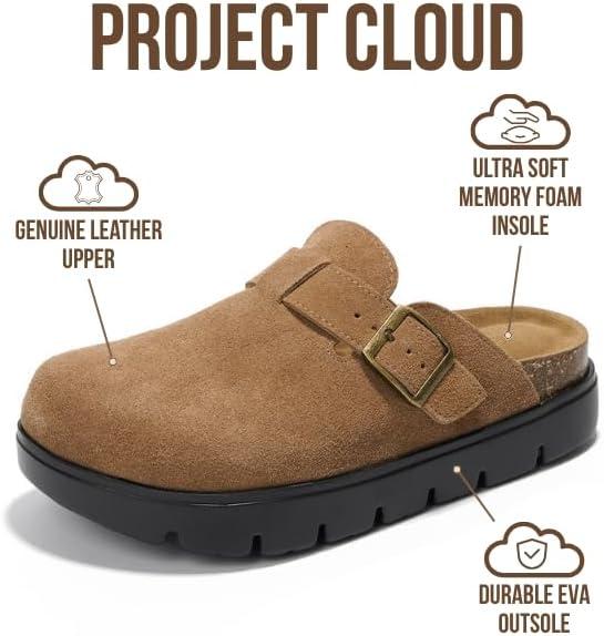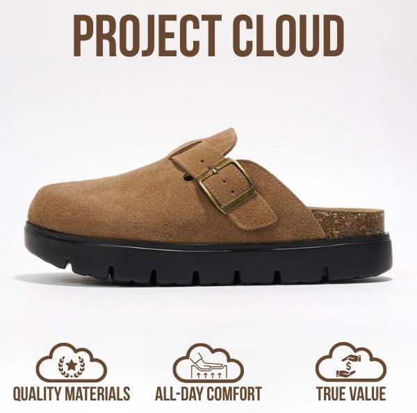 Project Cloud Genuine Leather Platform Clogs for Women Footwear – Memory Foam Arch Support Cork Footbed Casual Shoes & Mules for Women 2025 (Benton Chunky)(Foss Suede)