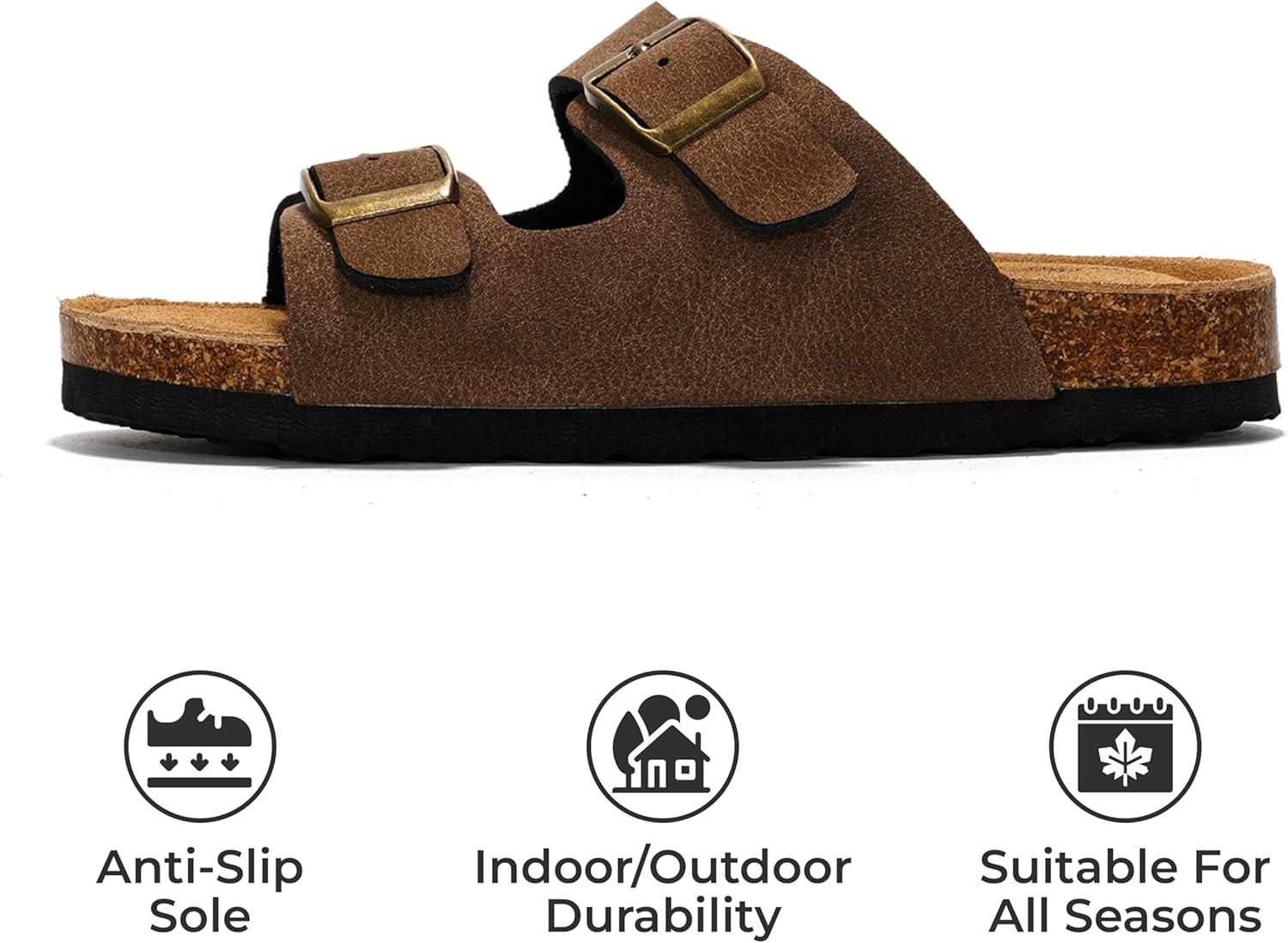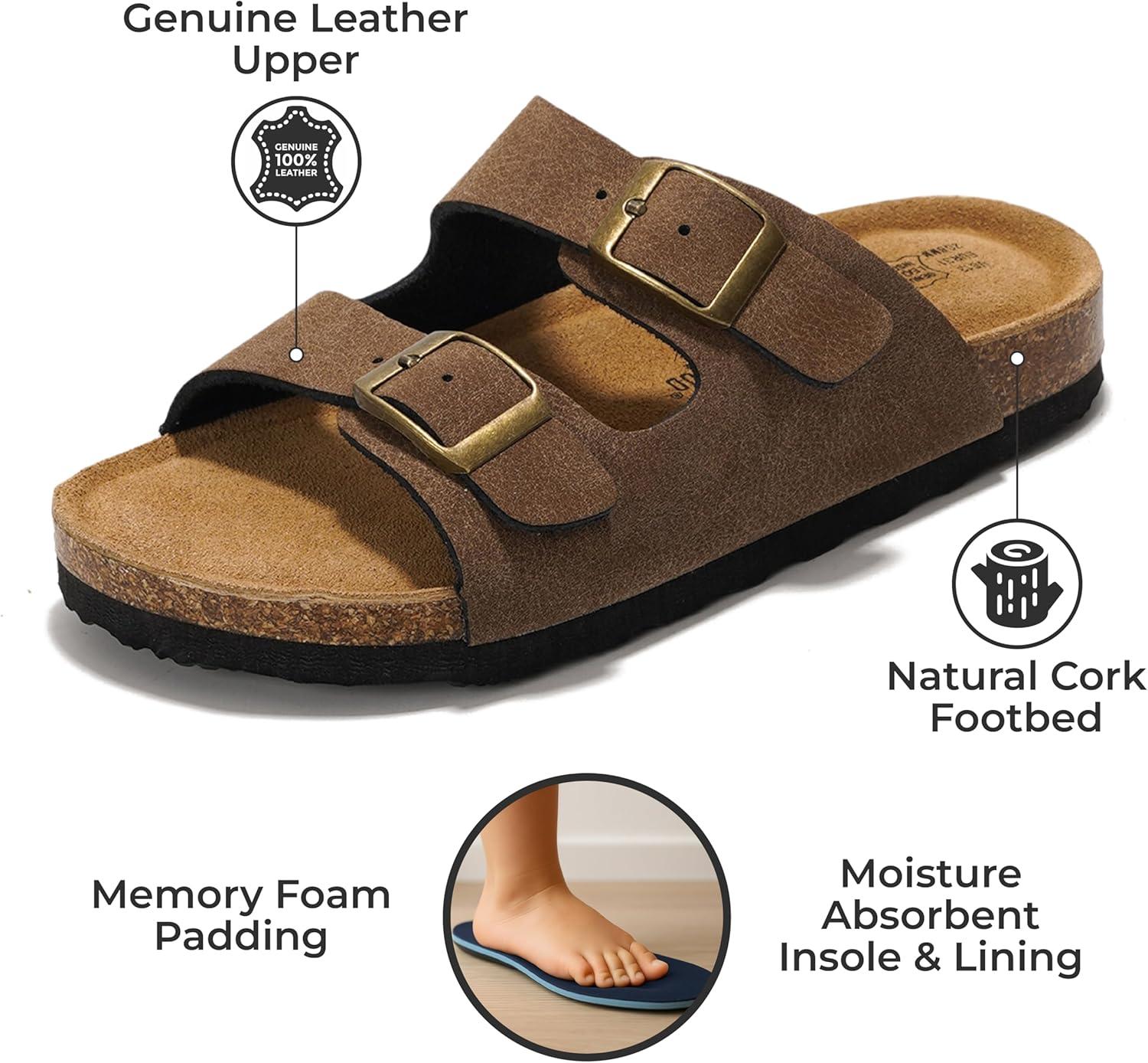 Project Cloud Genuine Leather Slides For Kids – Natural Cork Footbed Slides for Kids Sandals for Girls & Boys – Non-Slip Boys & Girls Sandals(Brown Sugar)