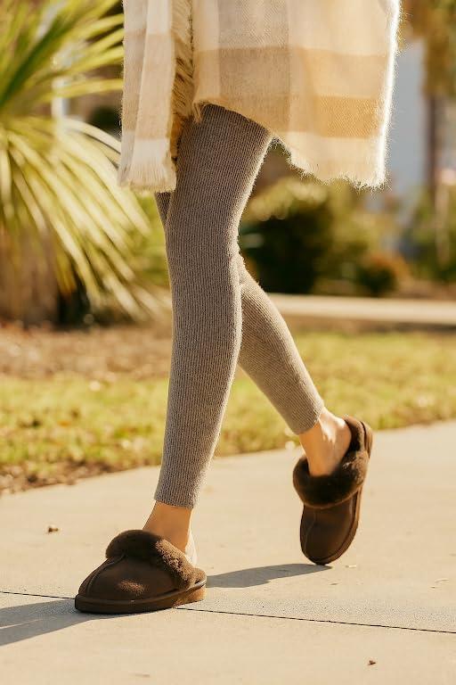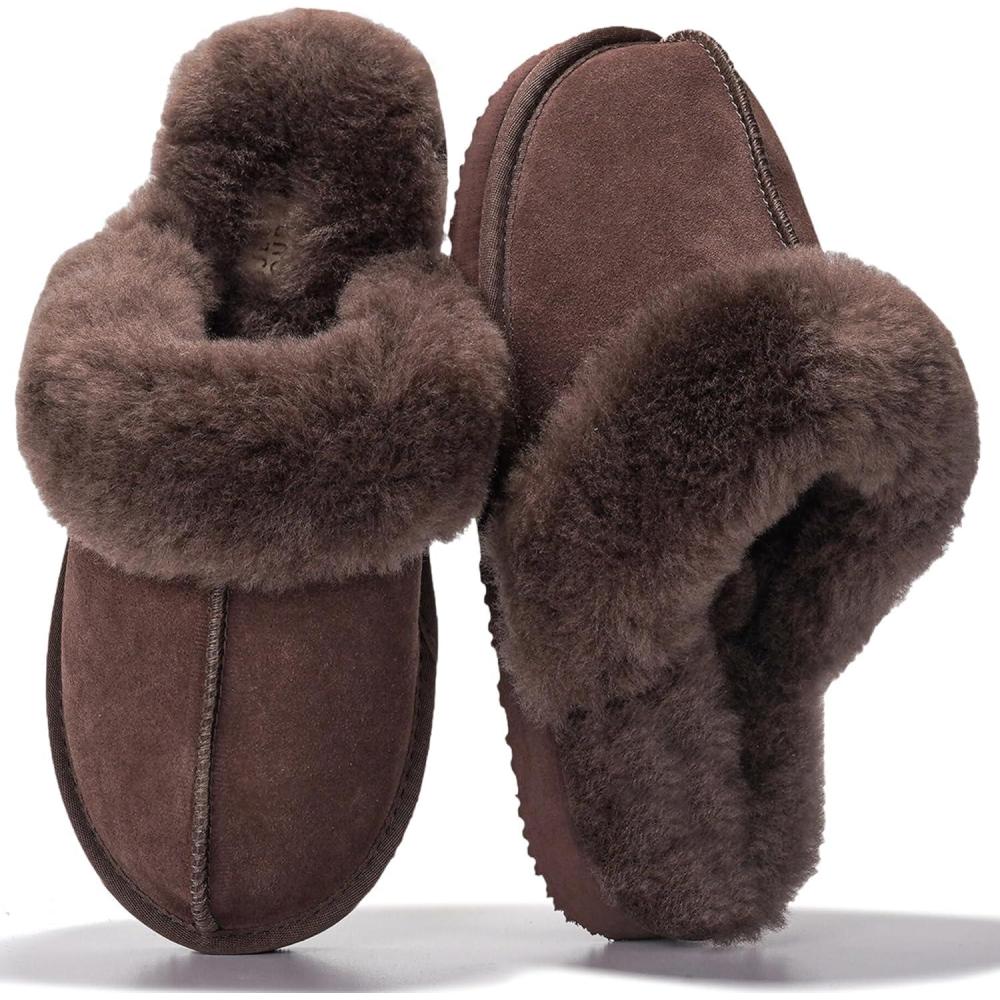 Project Cloud Genuine Leather Slippers for Women Footwear with Genuine Fur Lining Womens Clogs & Mule – Non-Slip Indoor/Outdoor Scuff Womens Slippers with Memory Foam Insole (Henka)(Chocolate Brown)