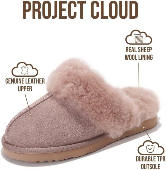 Project Cloud Genuine Leather Slippers for Women Footwear with Real Sheep Wool Lining Womens Clogs & Mule – Non-Slip Indoor/Outdoor Scuff Womens Slippers with Memory Foam Insole (Henka)(Frost Suede)