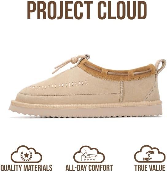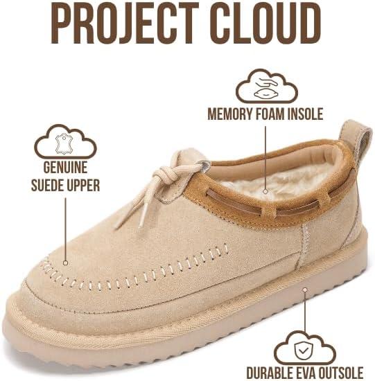 Project Cloud Genuine Leather Slippers for Women – Plush Fleece Lining Moccassin Womens Slippers with Memory Foam Cushion – Indoor Outdoor Fuzzy Women Slip On Shoes (Timber)(Sand Suede)