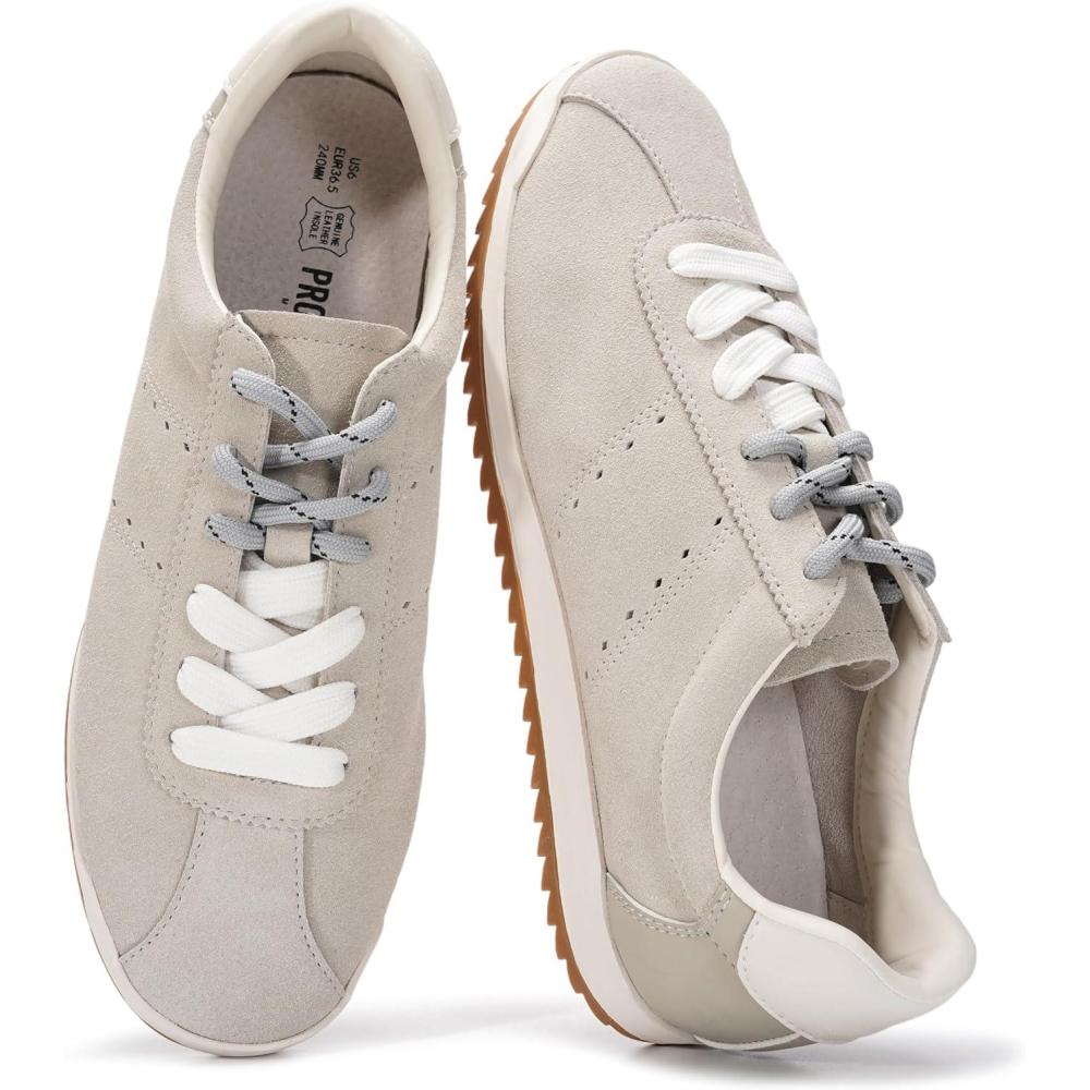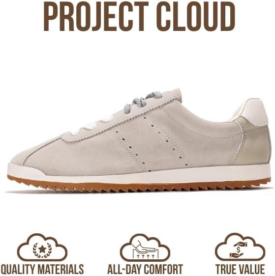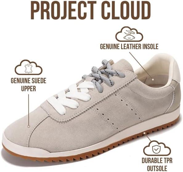 Project Cloud Genuine Leather Sneakers for Women – Womens Sneakers with Memory Foam Insole – Lightweight & Non Slip Womens Shoes – Stylish Fall Shoes for Women 2025 (Lynn)(White Suede)