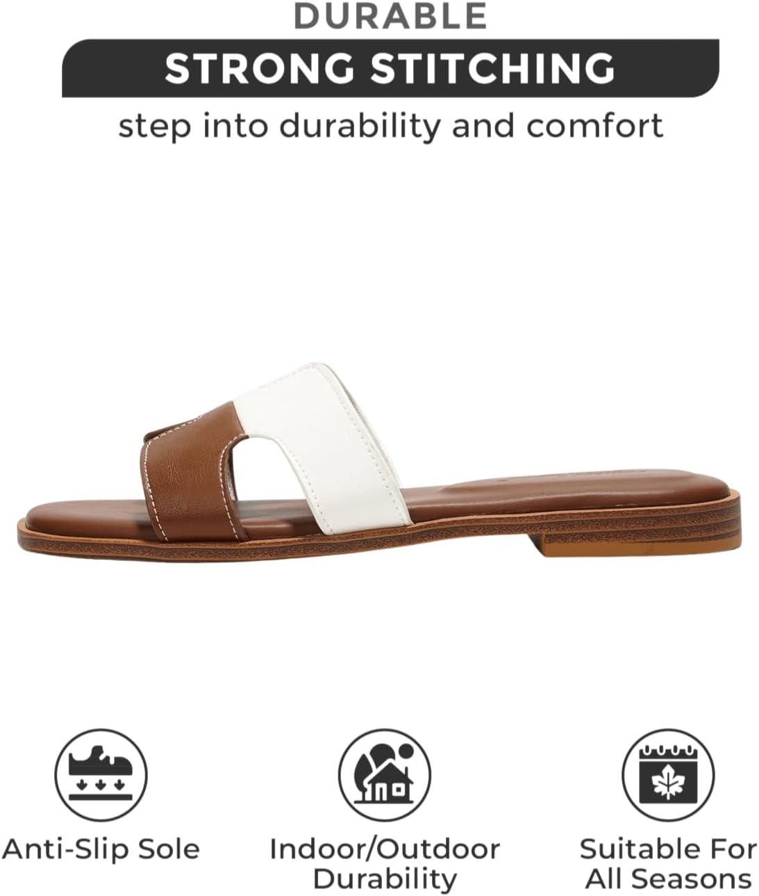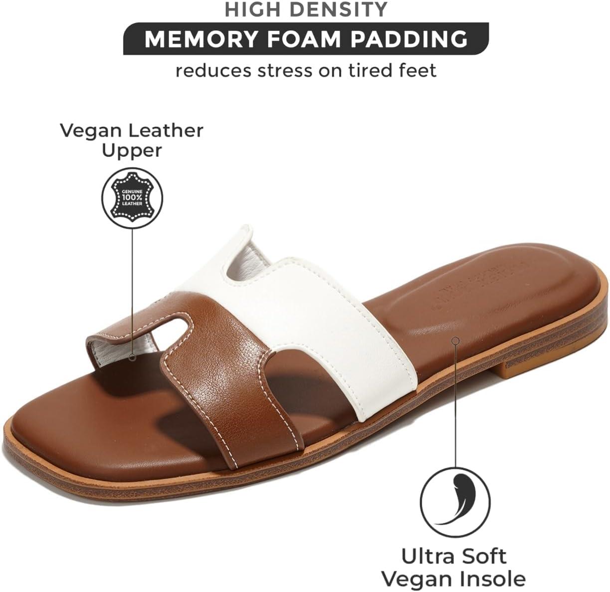 Project Cloud Genuine Leather Summer Sandals for Women 2025 – Fashion Flat Womens Sandals with Memory Foam Insole Slides Sandals Women Footwear – Mules Women’s Sandals (Jannel)(Brown White)