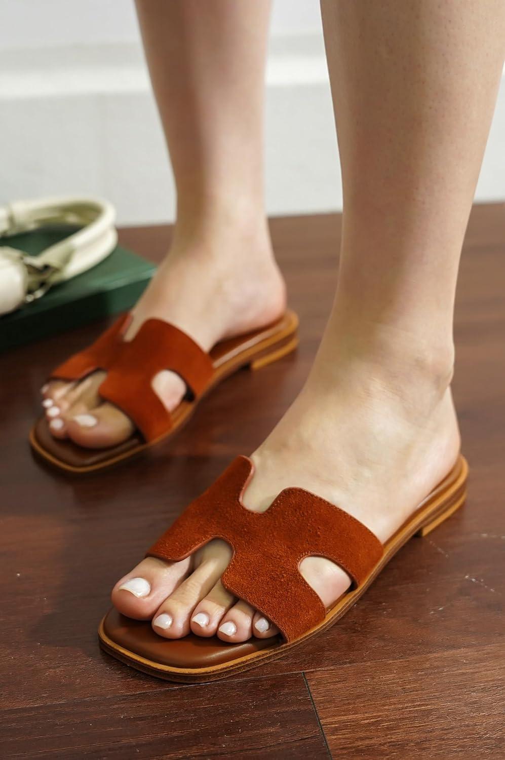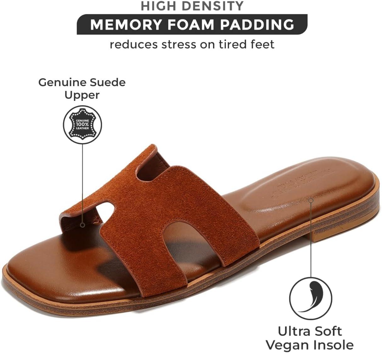Project Cloud Genuine Leather Summer Sandals for Women 2025 – Fashion Flat Womens Sandals with Memory Foam Insole Slides Sandals Women Footwear – Mules Women’s Sandals (Jannel)(Brown)