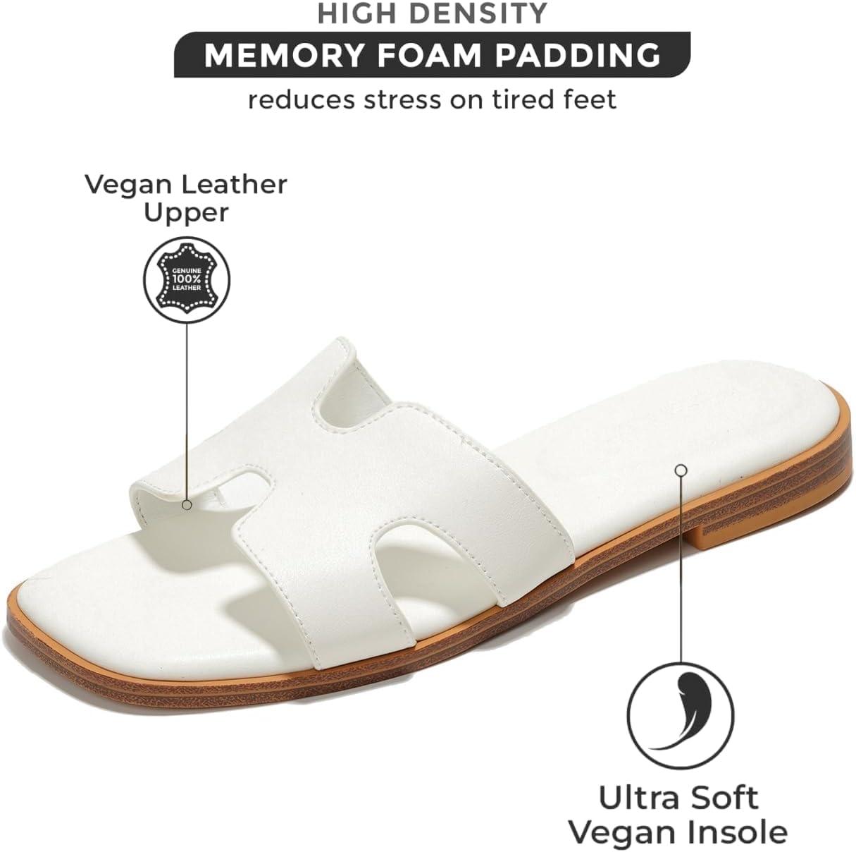 Project Cloud Genuine Leather Summer Sandals for Women 2025 – Fashion Flat Womens Sandals with Memory Foam Insole Slides Sandals Women Footwear – Mules Women’s Sandals (Jannel)(White)