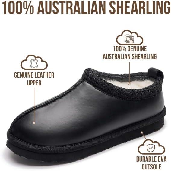 Project Cloud Genuine Leather Womens Slippers with Genuine Australian Shearling Fur Lining Slippers for Women – Non-Slip EVA with Memory Foam Fuzzy Slippers Women Footwear (Nerita)(Black)