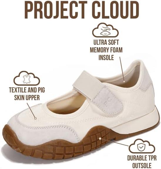 Project Cloud Girls Shoes – Memory Foam Insole Kids Shoes Girls Sneakers – Lightweight Mary Jane Flats & Non-Slip Comfortable Kids Sneakers (Little Donna)(White)