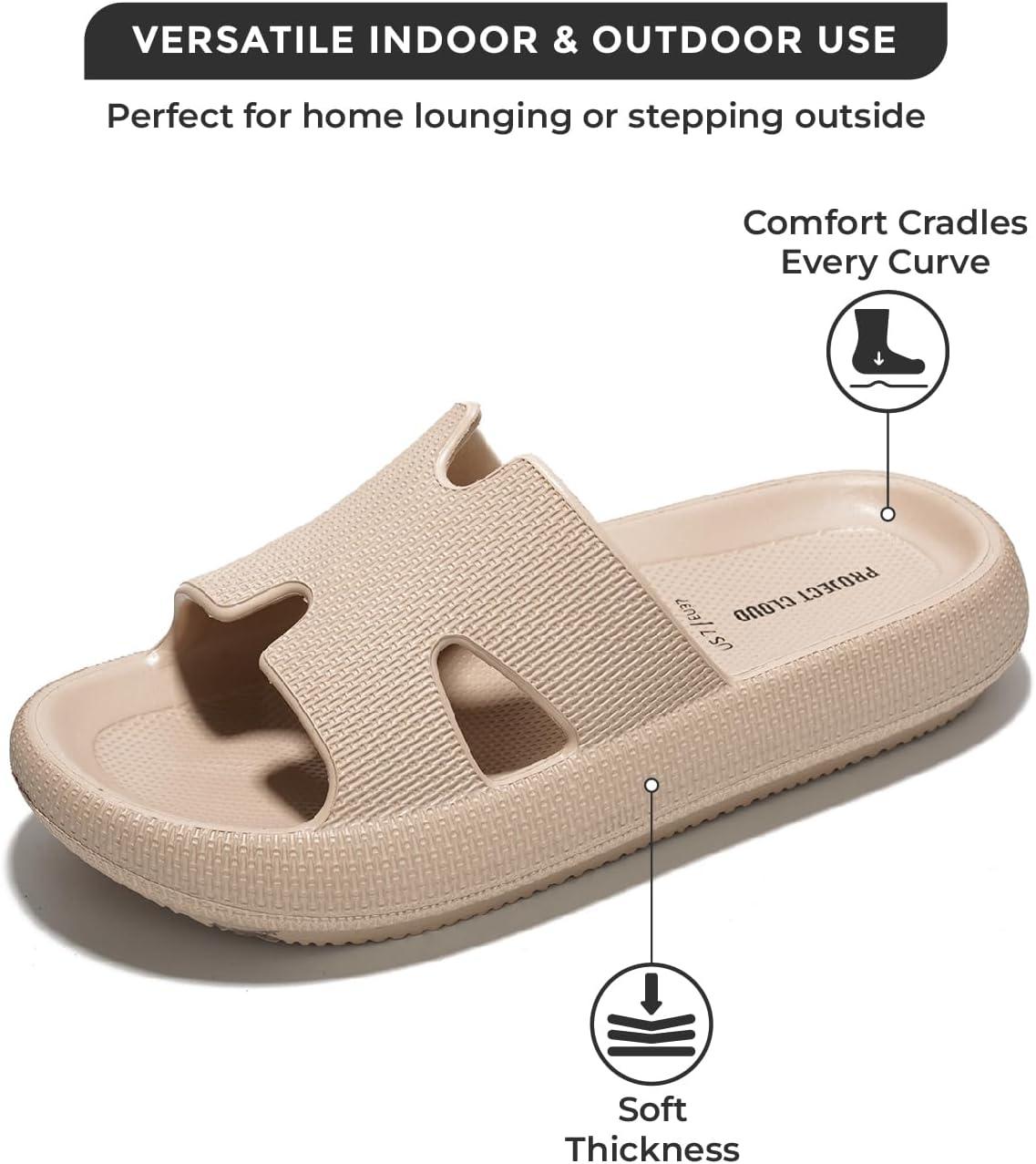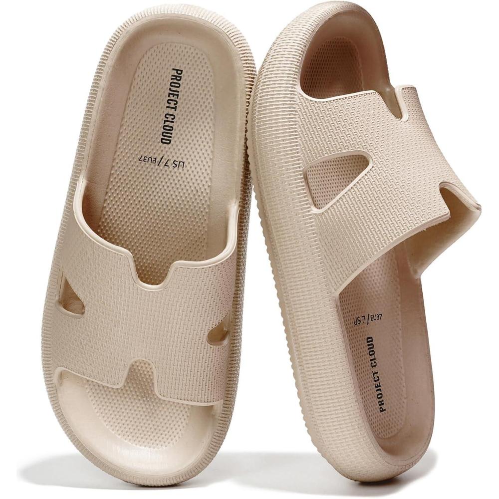 Project Cloud House Slippers Womens Sandals – Non-Slip and Lightweight Recovery Slippers for Women Beach Essentials Water Slides for Women (Pillow)(Beige)