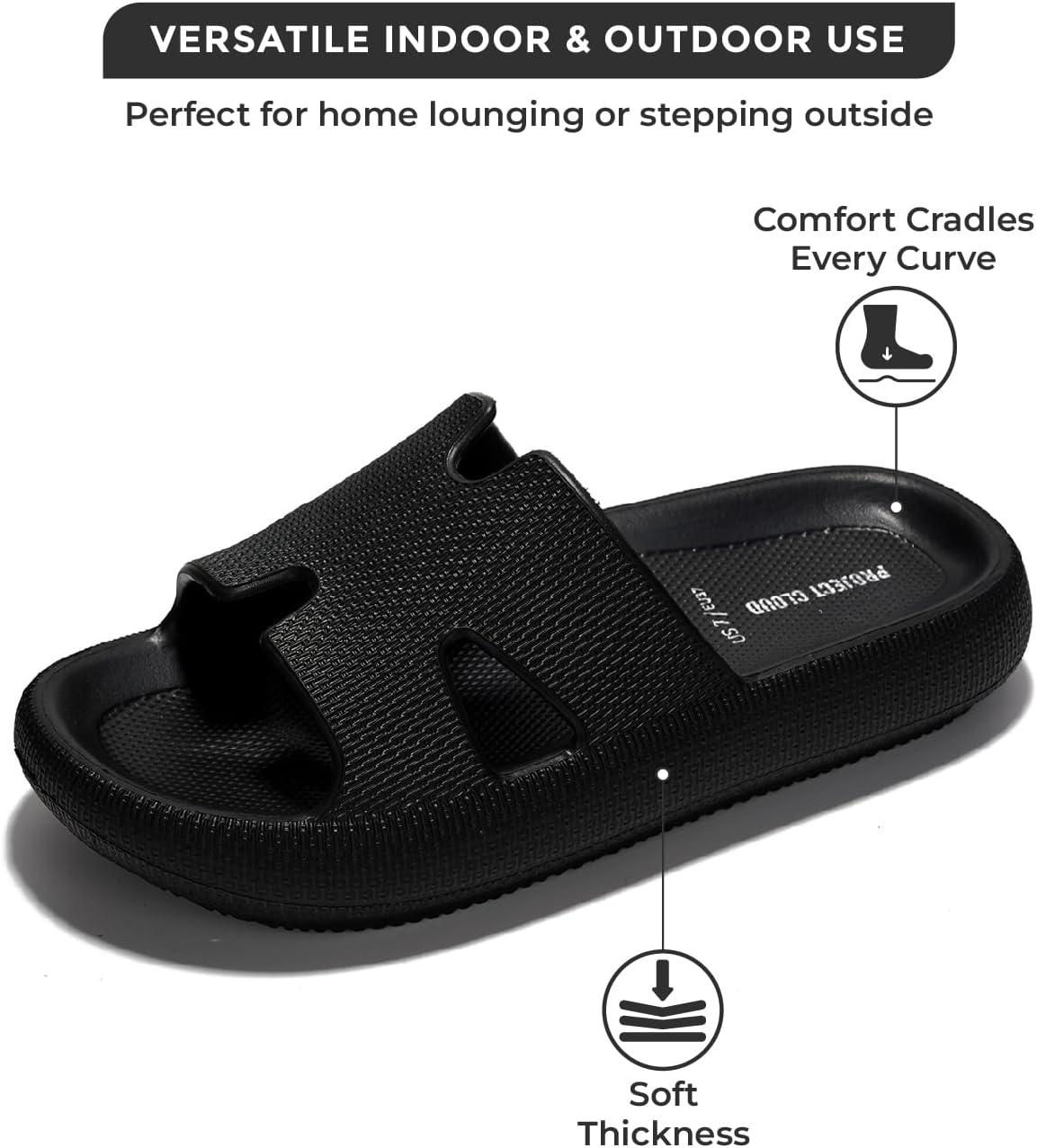 Get your hands on our exclusive Project Cloud House Slippers Womens Sandals – Non-Slip and Lightweight Recovery Slippers for Women Beach Essentials Water Slides for Women (Pillow)(Black) collection, now at a discounted price.
