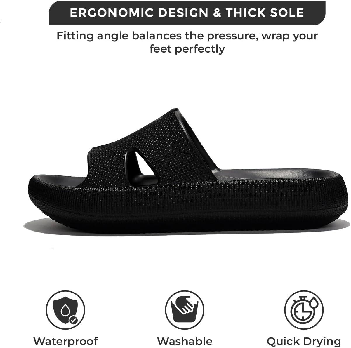 Project Cloud House Slippers Womens Sandals – Non-Slip and Lightweight Recovery Slippers for Women Beach Essentials Water Slides for Women (Pillow)(Black)