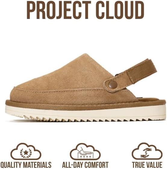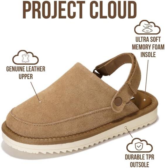 Project Cloud Kids Clogs Genuine Leather with Back Strap – Memory Foam & Lightweight Slip-on Boys and Girls Sandals with Adjustable Straps – Non-Slip Clogs for Kids Sandals (Little Goldstar)(Sand Suede)