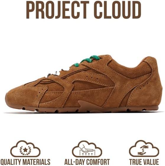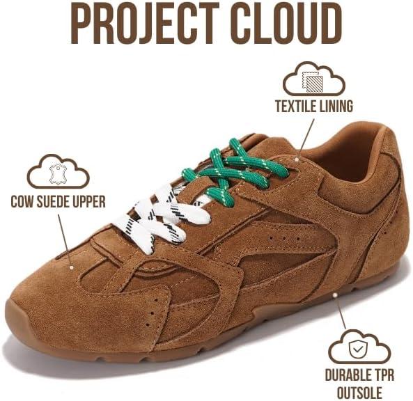 Project Cloud Leather Barefoot Shoes Women – Memory Foam Lace-Up Womens Sneakers – Lightweight & Non Slip Womens Shoes Casual – All-Day Women’s Fashion Sneakers for 2025 (Roma)(Tan Suede)