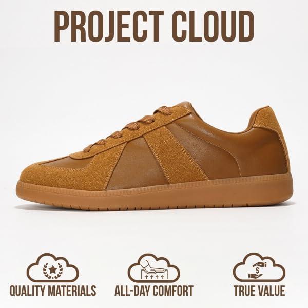 Project Cloud Leather Sneakers for Men Shoes – Memory Foam Insole Non-Slip Casual Shoes for Men Footwear – Lightweight Vegan Leather Fashion Sneakers (Dixon)(Tan)