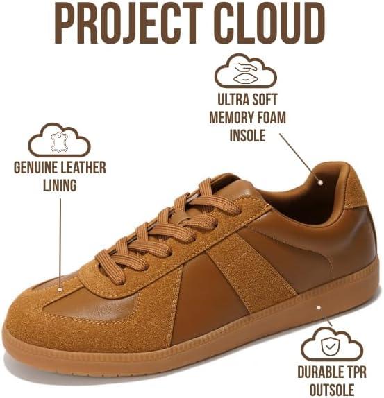 Project Cloud Leather Sneakers for Men Shoes – Memory Foam Insole Non-Slip Casual Shoes for Men Footwear – Lightweight Vegan Leather Fashion Sneakers (Dixon)(Brown)