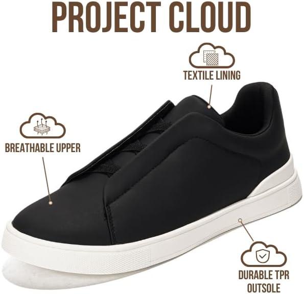 Project Cloud Men Sneakers – Memory Foam Insole Mens Shoes – Lightweight & Non Slip Casual Shoes for Men – Everyday Slip On Mens Sneakers (Hudson)(Black Pu)