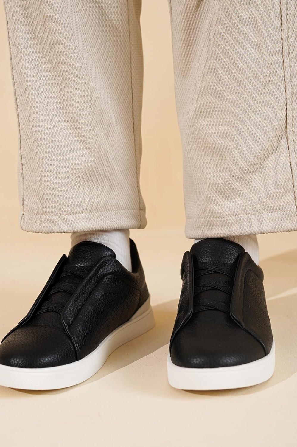 Project Cloud Leather Sneakers for Men Shoes – Memory Foam Insole Non-Slip Casual Shoes for Men Footwear – Lightweight Vegan Leather Fashion Sneakers (Dixon)(Black)