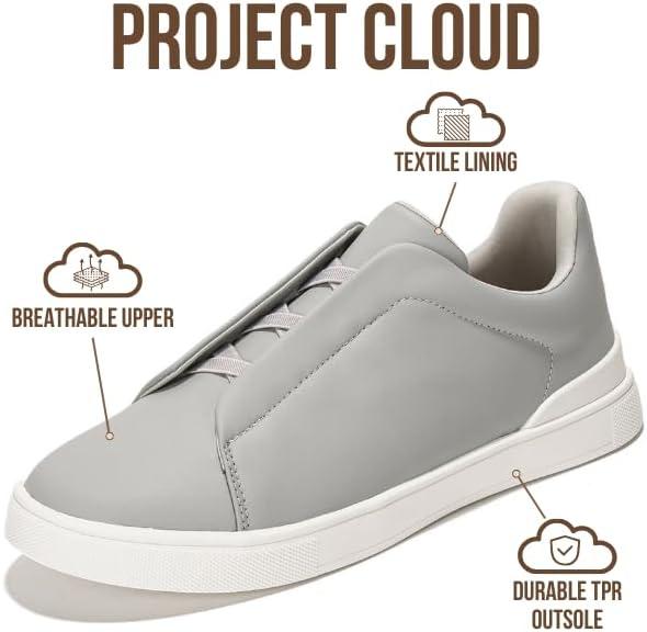 Project Cloud Men Sneakers – Memory Foam Insole Mens Shoes – Lightweight & Non Slip Casual Shoes for Men – Everyday Slip On Mens Sneakers (Hudson)(Grey Pu)