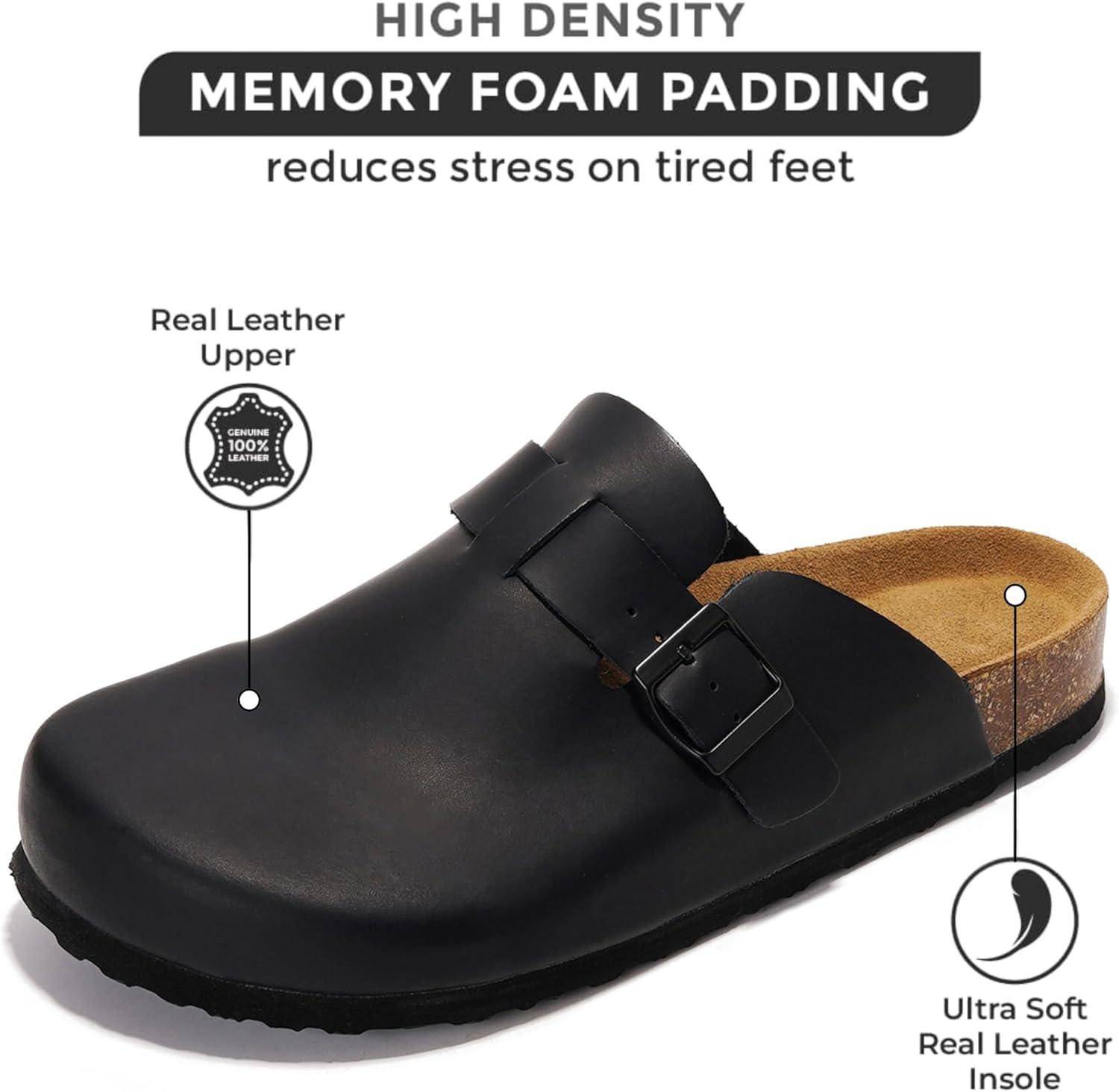 Project Cloud Mens Clogs – Full Grain Genuine Leather Memory Foam Clogs for Men Arch Support Cork Footbed – Non Slip Platform Mules (Brooklyn)(Jet Black Suede)