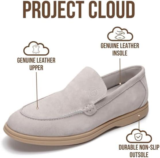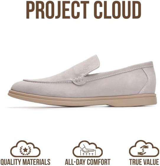 Project Cloud Mens Shoes 100% Genuine Leather with Memory Foam Insole Venetian Loafers for Men Footwear – Non Slip Moccasins Loafer Mens Casual Shoes (Mark)(Light Grey Suede)