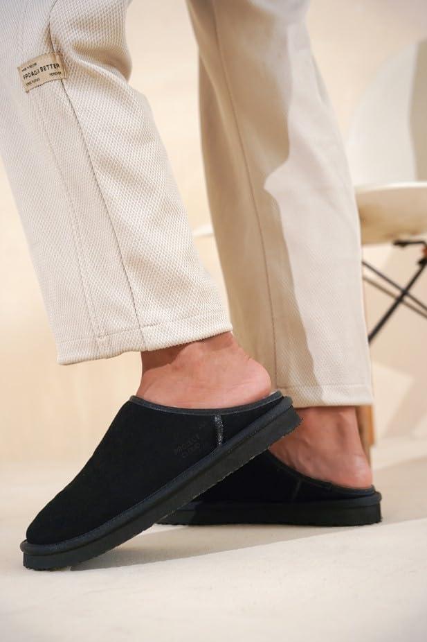 Be the first to review “Project Cloud Mens Slippers 100% Genuine Leather and Genuine Shearling Lining – House Slippers for Men with Memory Foam Insole – Lightweight & Non Slip Mens House Shoes (Chill)(Black Suede)”