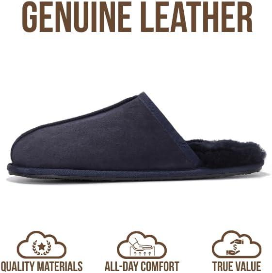 Be the first to review “Project Cloud Mens Slippers 100% Genuine Leather and Genuine Shearling Lining – House Slippers for Men with Memory Foam Insole – Lightweight & Non Slip Mens House Shoes (Chill)(Navy Suede Scuff)”