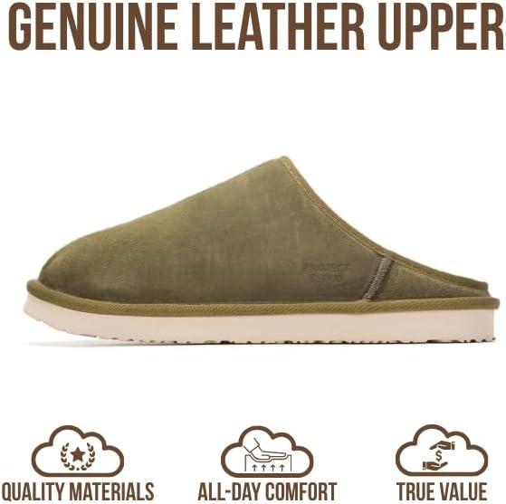Be the first to review “Project Cloud Mens Slippers 100% Genuine Leather and Genuine Shearling Lining – House Slippers for Men with Memory Foam Insole – Lightweight & Non Slip Mens House Shoes (Chill)(Olive Suede)”