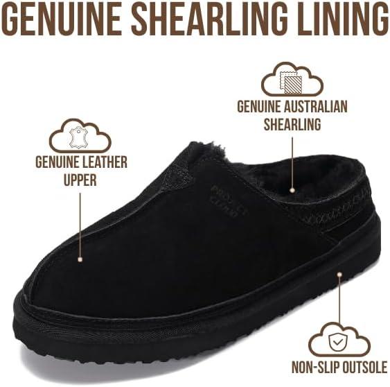 Project Cloud Mens Slippers 100% Genuine Leather & Australian Shearling Lining Furry House Slippers for Men with Memory Foam Insole – Lightweight and Non-Slip Mens Shoes (Unwind)(Black Suede)