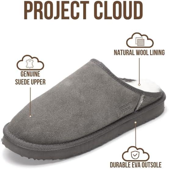 Project Cloud Mens Slippers Genuine Leather and Genuine Shearling Lining – House Slippers for Men with Memory Foam Insole – Lightweight & Non Slip Mens House Shoes (Chill)(Grey Suede)