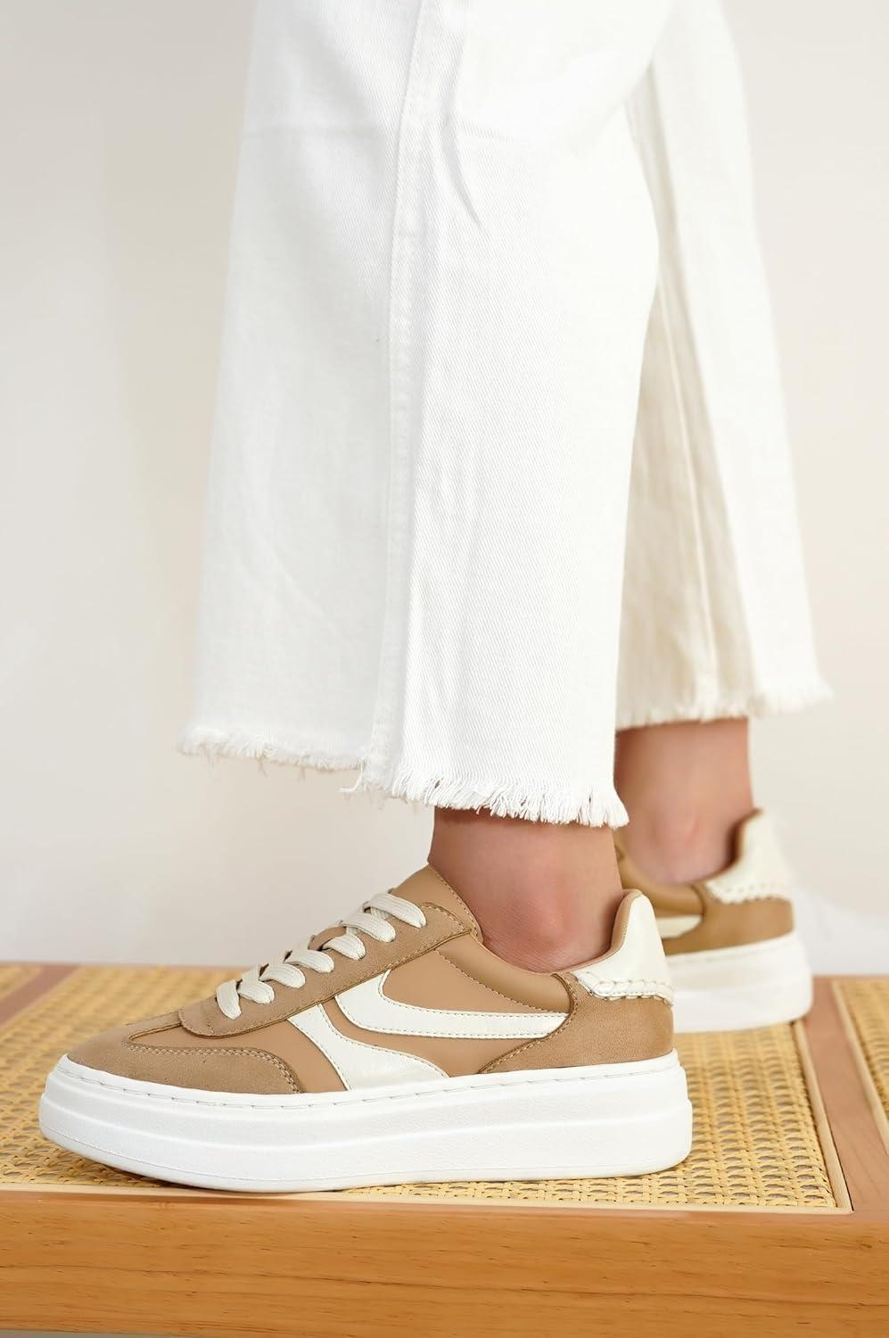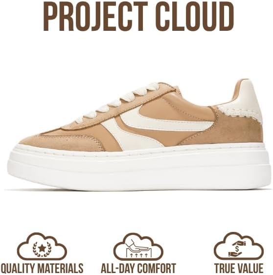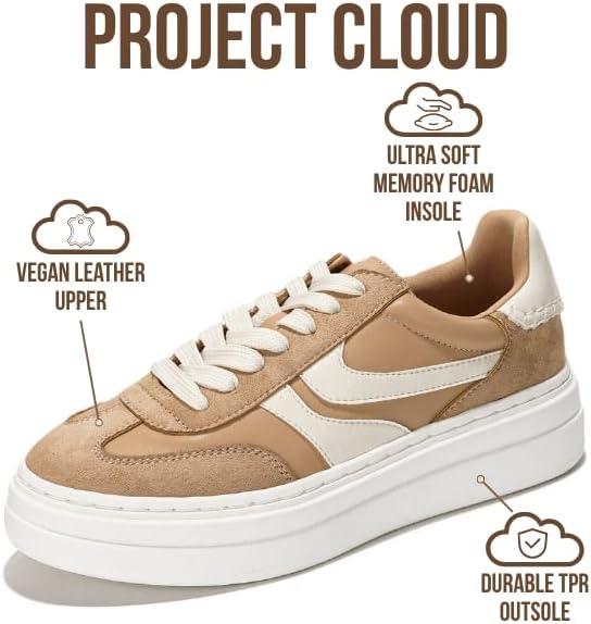 Project Cloud Platform Sneakers for Women Footwear – Memory Foam Insole Womens Shoes, Lightweight and Non-Slip Sole Lace Up Fashion Sneakers (Dodge)(Tan Mult)