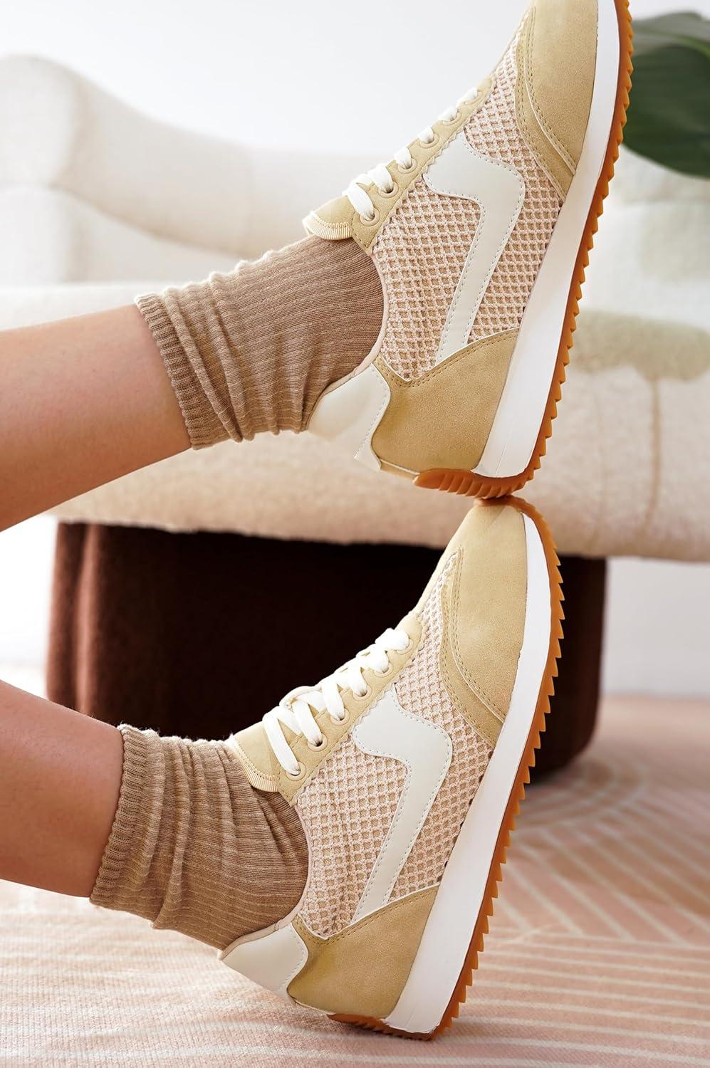 Project Cloud Sneakers for Women – Lightweight Lace-Up Shoes for Women with Memory Foam Insoles – Trendy Womens Shoes – Non-Slip, Comfortable Womens Sneakers (Madison)(Tan)